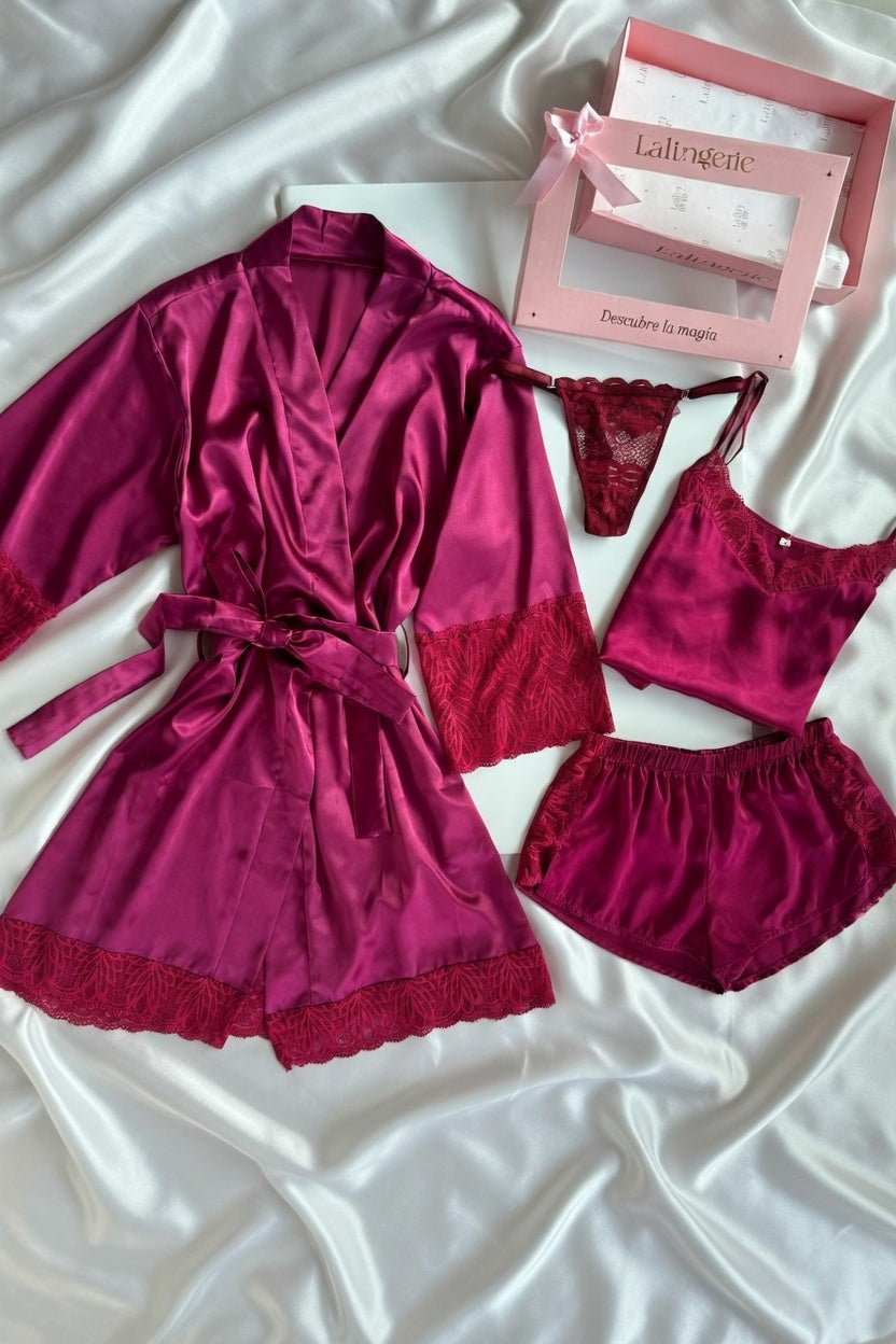 Kimono Satin con encaje elasticoInstrucciones de cuidado: Lavar a mano temperatura máxima 40°C. Lavar con...