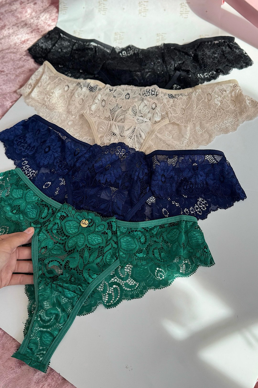 Panty en encaje elastico  con protector de algodón en zona intima desde la s hasta la xl